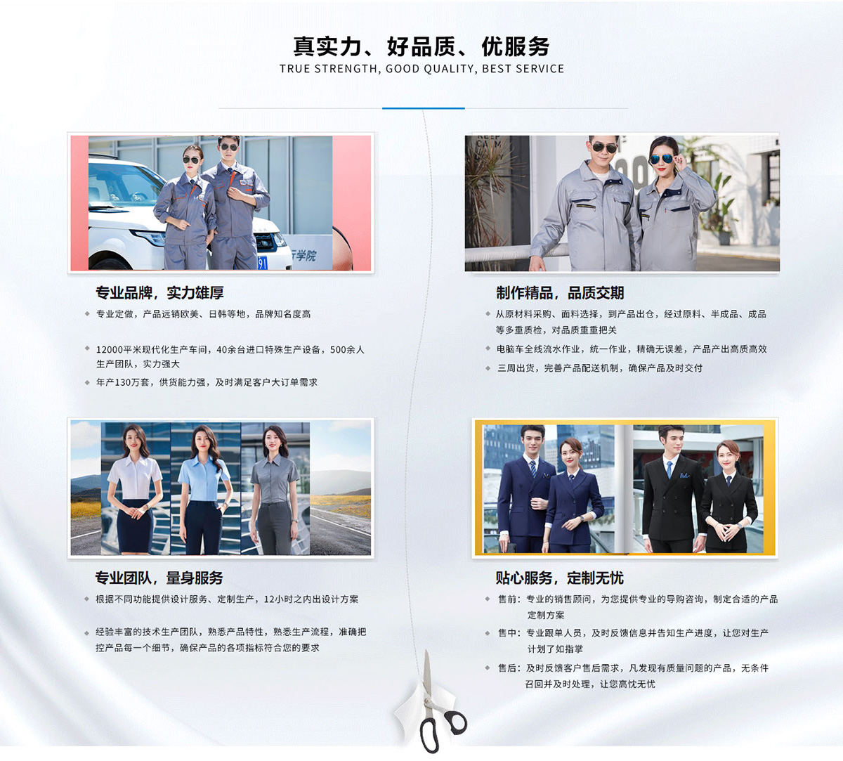 ◆ 融入我們的生產(chǎn)和設(shè)計(jì)中,為客戶提供完美的工作裝產(chǎn)品!